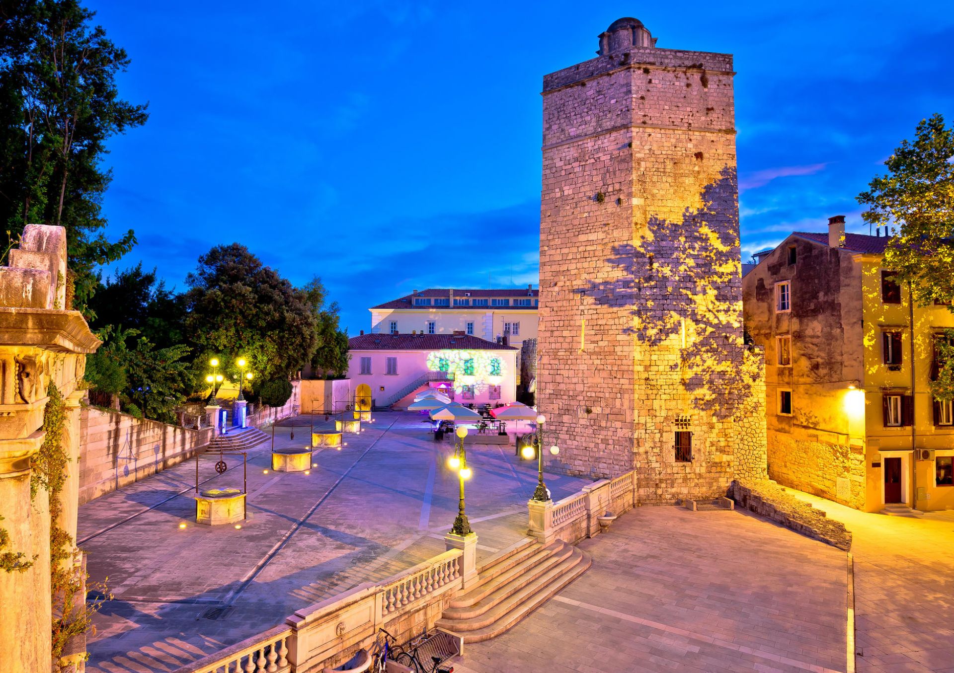 Located at the foot of the stone walls, the old city square stands on the site of the former defensive moat that surrounded the Old City. Built by the Venetians in 1574, it was designed to provide Zadar with drinking water from wells in case of a siege by the Ottoman soldiers. The five wells were built on the site of deep holes, hence its name "the Square of Five Wells". By the way, medieval wells served as a source of water until the beginning of the 19th century. Only then did they become popular tourist attractions. The square looks especially romantic at night when colorful modern lighting highlights the beauty of the fortress walls, bastions, and, of course, the five wells.
