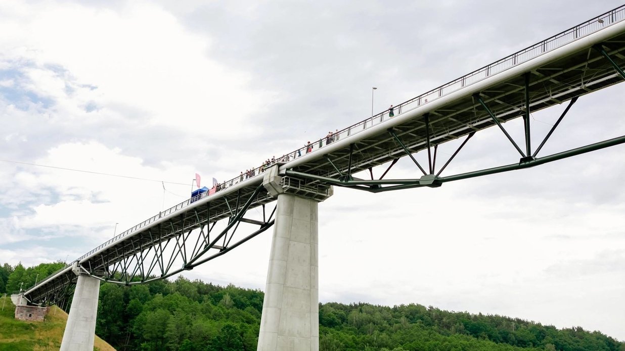 The White rose bridge is the highest pedestrian bridge in Lithuania, connecting the banks of the Neman River. For its large proportions, it was even included in the Lithuanian book of records.