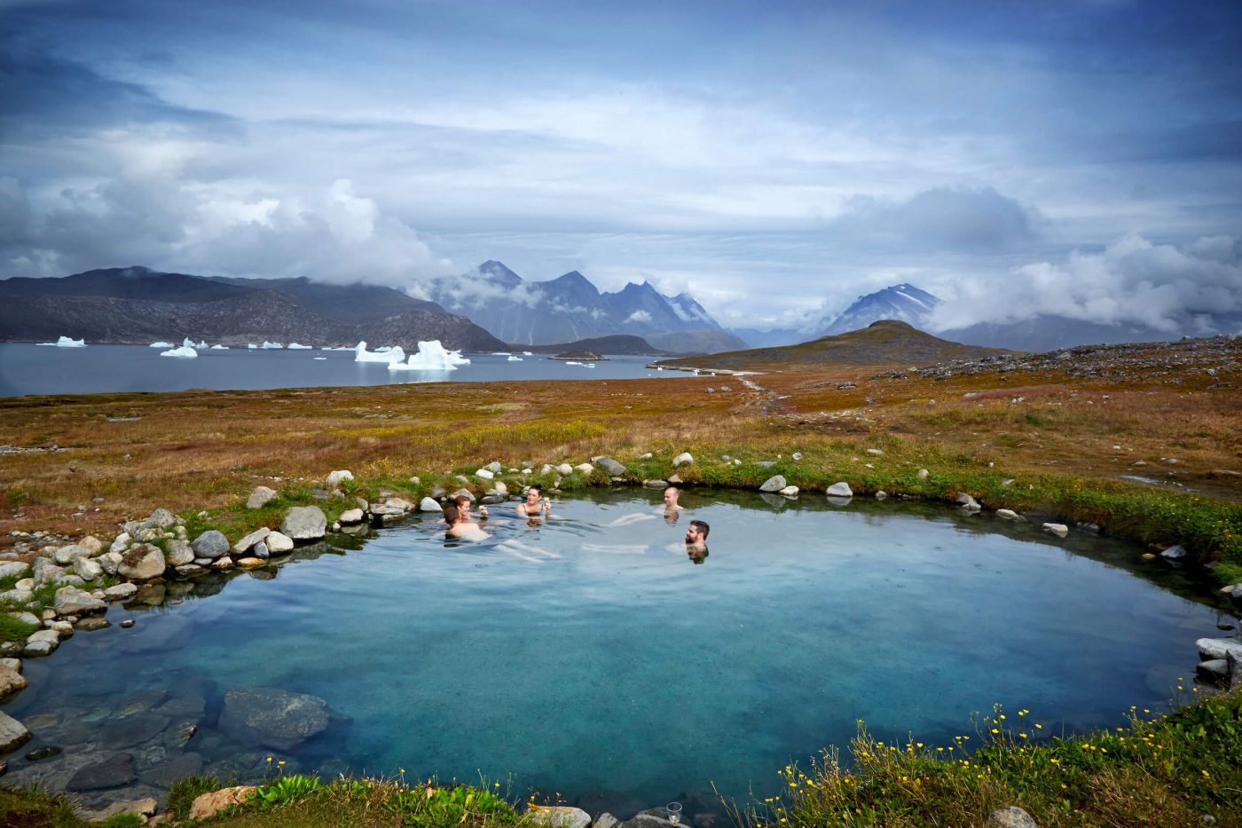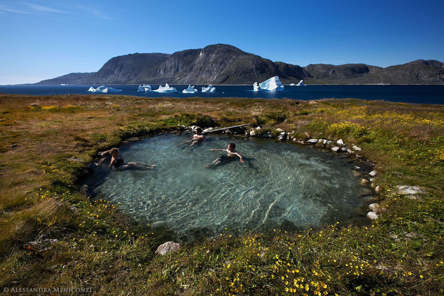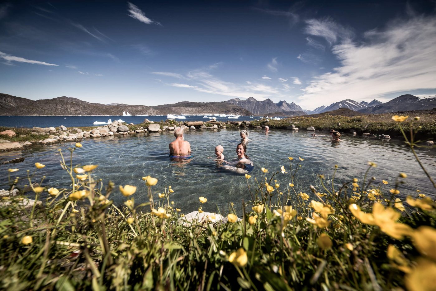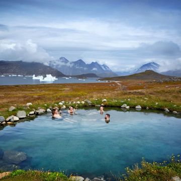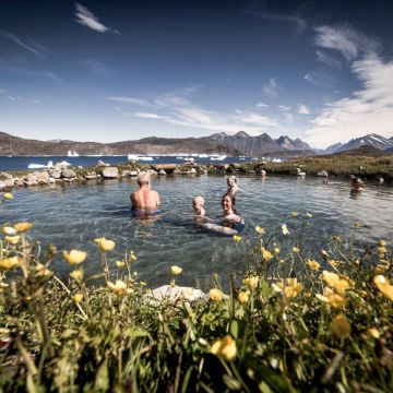 The nature of Greenland is incomparable. It combines icebergs, mountains, plains, ice fields, and hot springs. It is so nice to plunge into warm, even hot water after many hours and kilometers of hiking or sightseeing!