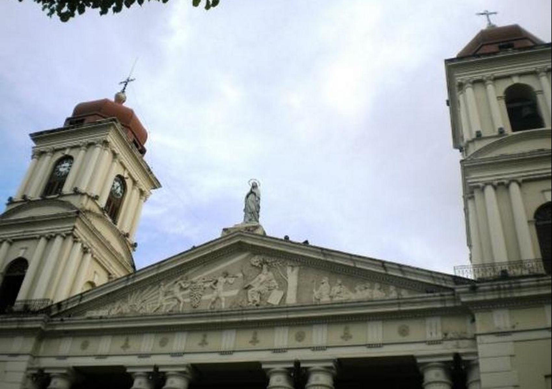 After the cathedral was rebuilt, its architectural look combined several styles. These were neoclassicism, renaissance, and baroque. Above, there is a marble bas-relief depicting the Exodus of Jews from Egypt, made by the sculptor Juan Batista Finocharo. The frontispiece has a white marble statue of the Virgin Mary. The wooden sculpture of the crucifixion of Christ is also very interesting. It is located on the left side of the vestibule and loved by parishioners.
