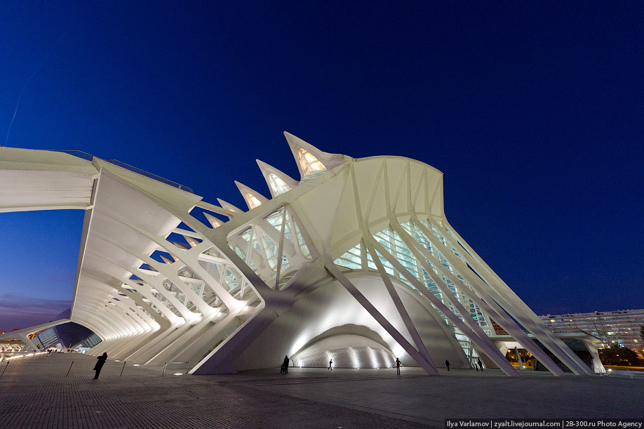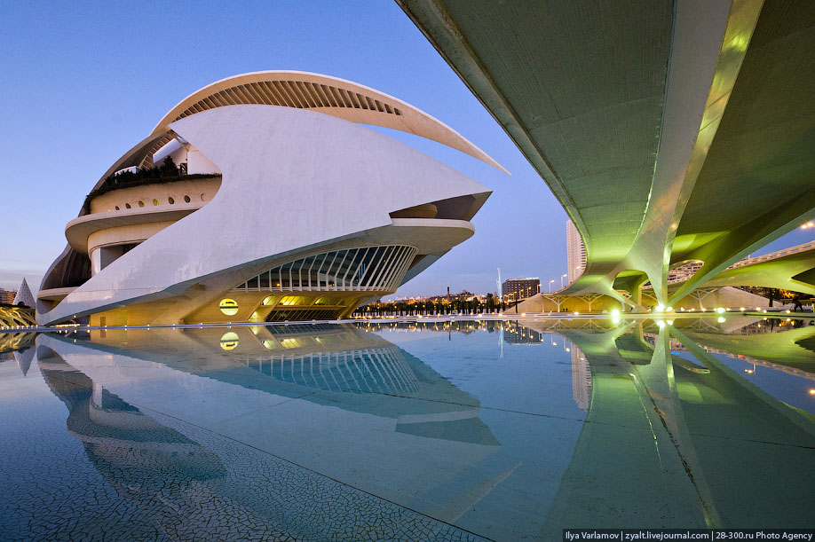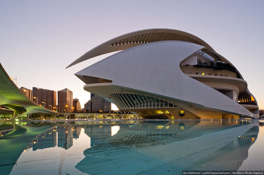 Cependant, il est inhabituel, en se promenant dans les quartiers de bâtiments historiques, d'arriver à une structure inhabituelle composée de bâtiments, de piscines, de fontaines et de ruisseaux aux formes étranges ? C'est la cité des arts et des sciences à Valence.