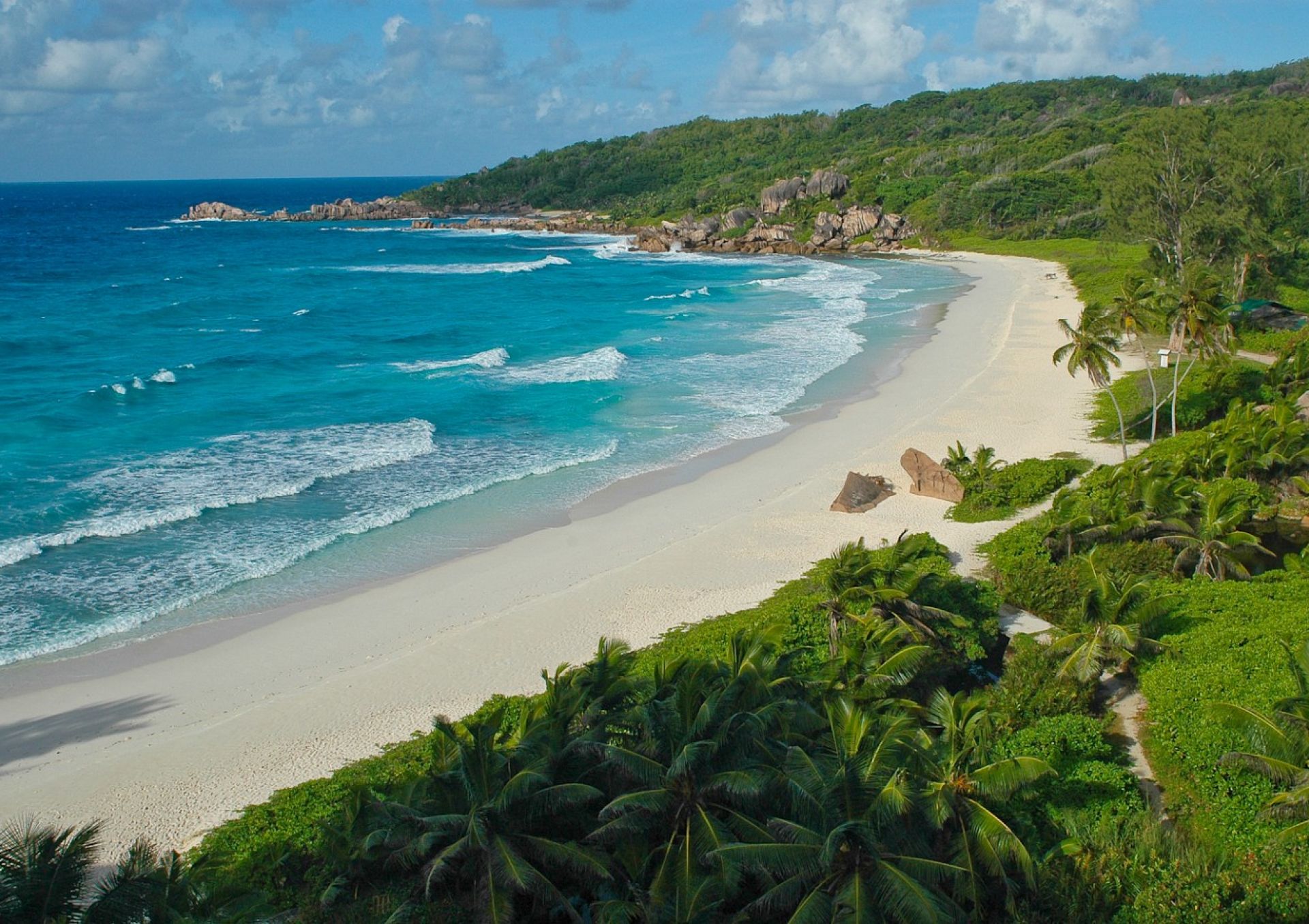 Grand Anse beach is located very close to the airport. Perhaps, that is why it is so popular among tourists. It doesn't take much time, you just need to fly to Praslin island and your vacation has already begun: from the plane directly to the ocean.