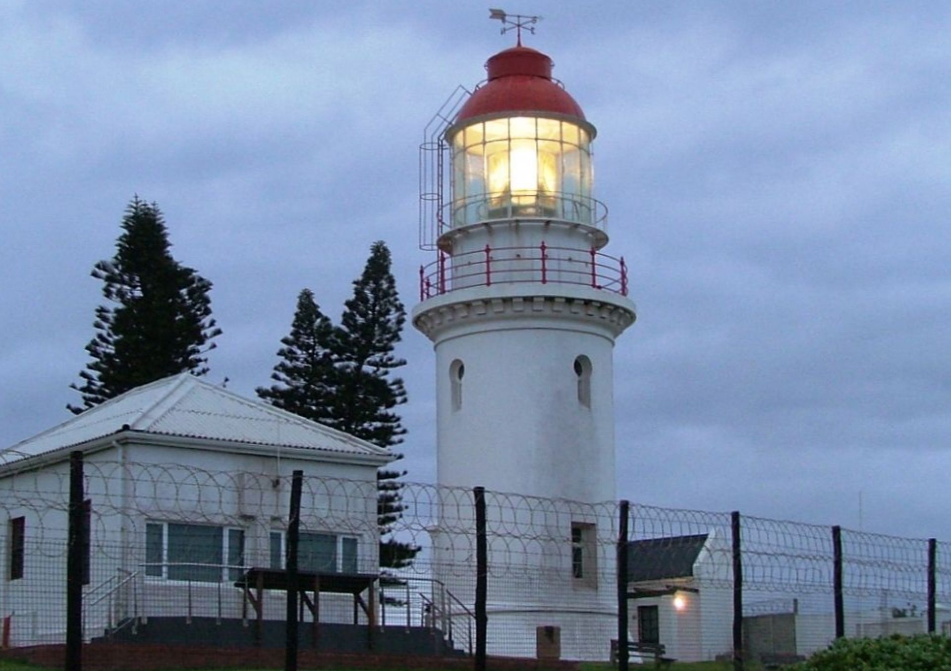 The lighthouse is located on the East coast of the city. The white tower rises above the Golf course on one side and above his Majesty the Indian ocean on the other. Hood Point lighthouse was built 55 meters high above the water level. The building was painted white, and the roof and balcony on the top floor were painted red. With this colouring, from a distance, the lighthouse resembles a local wrapped in a bright scarf on the edge of a cliff. They made a small window, resembling a keyhole on the facade under the balcony. Construction was completed in 1895. At the same time, the lighthouse began to show the ships the way. The lamp flashes four times every forty seconds. Ships see the light of a lantern 31 miles away and orient themselves where to go.