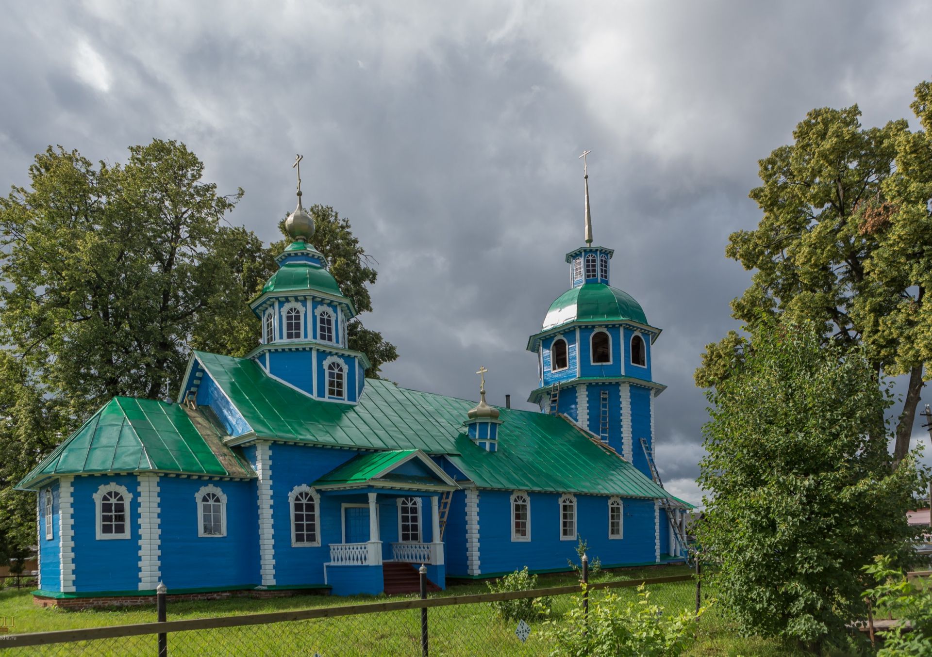 One of these temples is the oldest wooden church in Nizhny Novgorod Oblast, the Church of the Vladimir Icon of the Mother of God, which gave the name to the village in the 17th century. This rural shrine was erected in 1766, but its modern exterior was formed during the reconstruction in the middle of the 19th century. The combination of various parts like arched windows, Empire cornices and architraves, Doric columns, and rustications at the corners was uncommon for medieval wooden temples. Not to mention the domes that crown the main hall and the octagonal bell tower. These elements made the temple a unique monument of Russian wooden architecture and a center of attraction for connoisseurs of religious architecture.